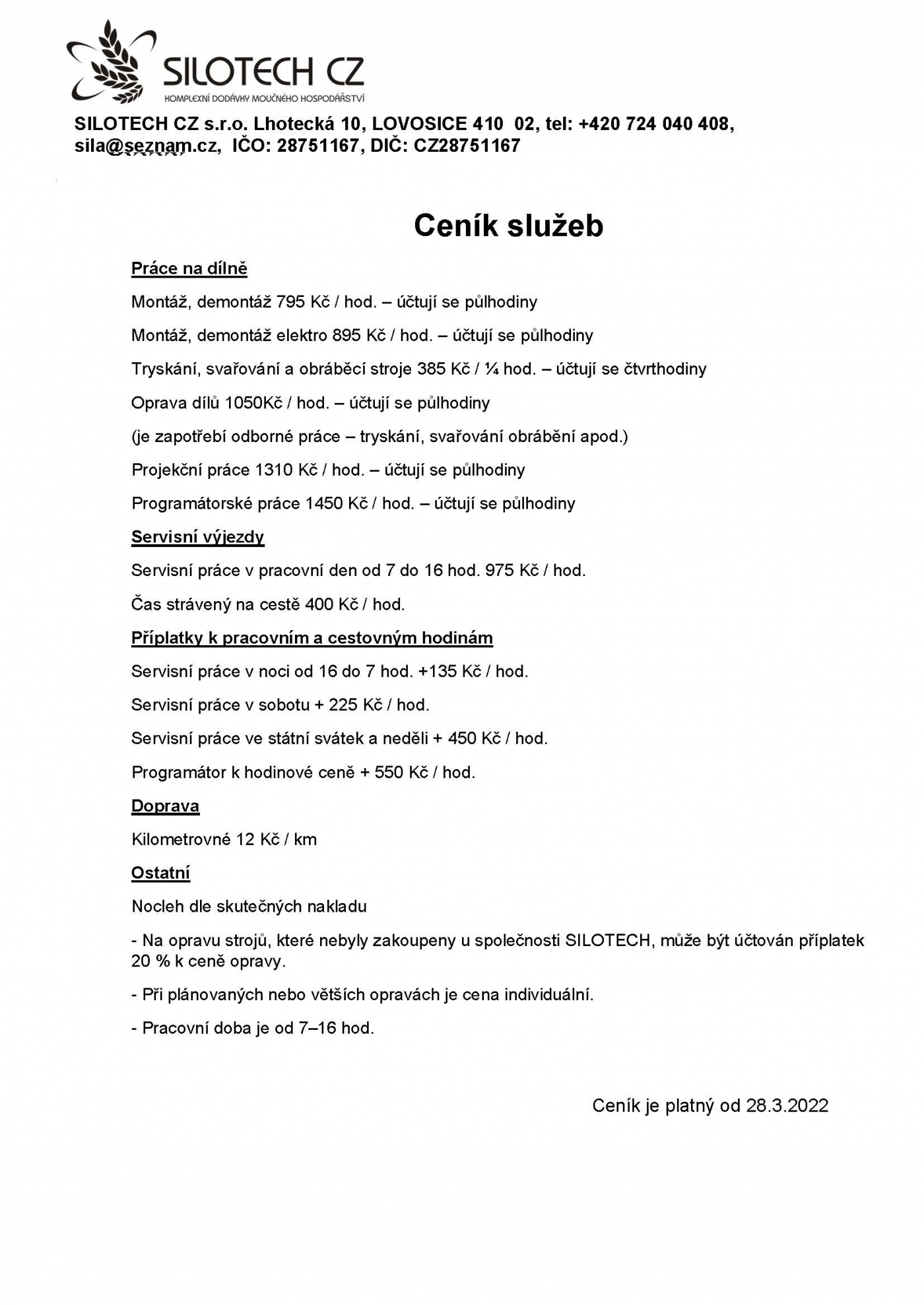 Ceník SILOTECH CZ